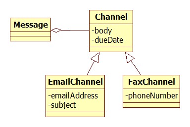 Et donc, le channel référencé par le message ne sera ni une instance de EmailChannel, ni une instance de FaxChannel.